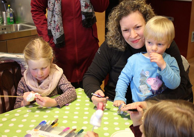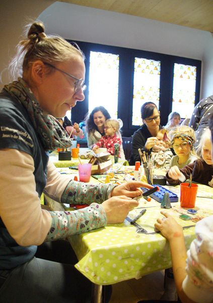 Familien von den Spielplatzaktionen, aus dem lebens.raum, aus der Gemeinde und auch Kinder aus dem Lutherkeller waren mit dabei. Es wurde gelacht, gebastelt und gemeinsam Zeit verbracht – und es entstanden viele liebevoll gestaltete Osterwerke.